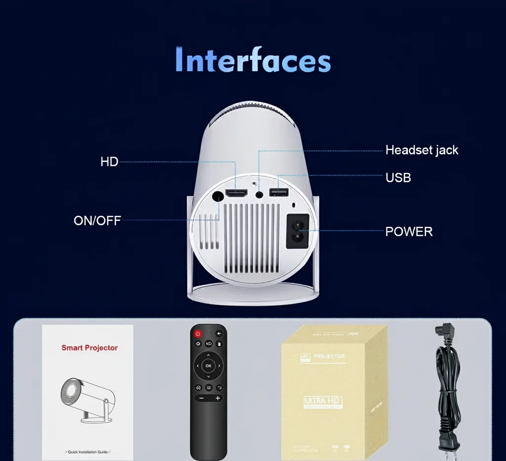 📦 محتويات العبوة: ◾️ جهاز البروجكتر . ◾️ ريموت تحكم . ◾️ كابل الكهرباء . ◾️ كتيب التعليمات.